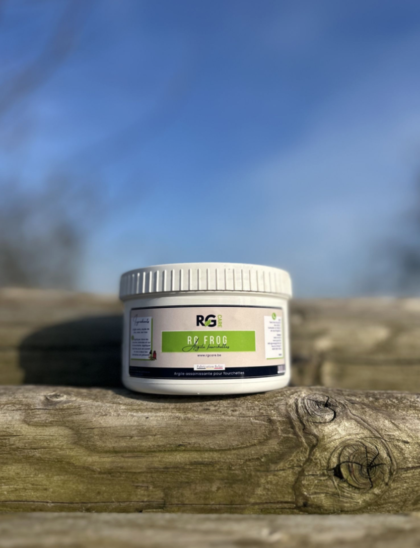RG FROG est une argile assainissante fourchettes 100 % naturelle pour la fourchette du cheval, conçue pour protéger, assainir et favoriser la régénération des tissus. Elle aide à prévenir la pourriture de la fourchette tout en maintenant un sabot sain et résistant, même en milieu humide.